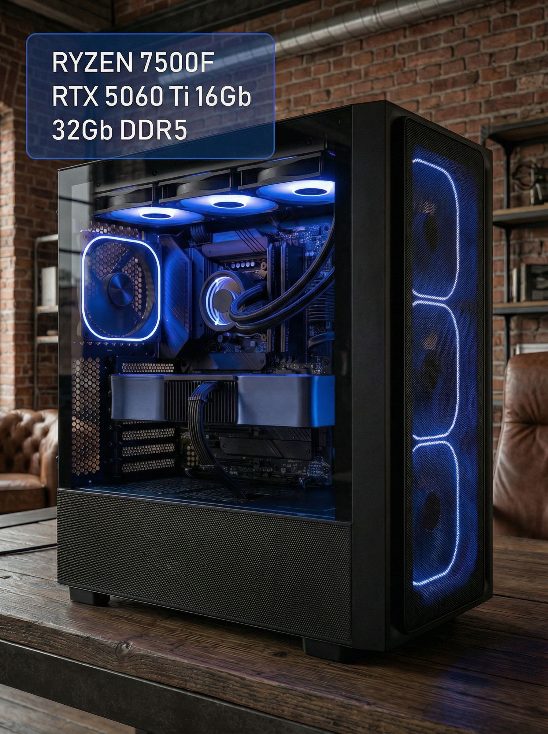 Игровой компьютер / RYZEN 5 7500F / NVIDIA RTX5060Ti / 32GB / DDR5 / SSD 1 ТБ / Windows 11 Pro