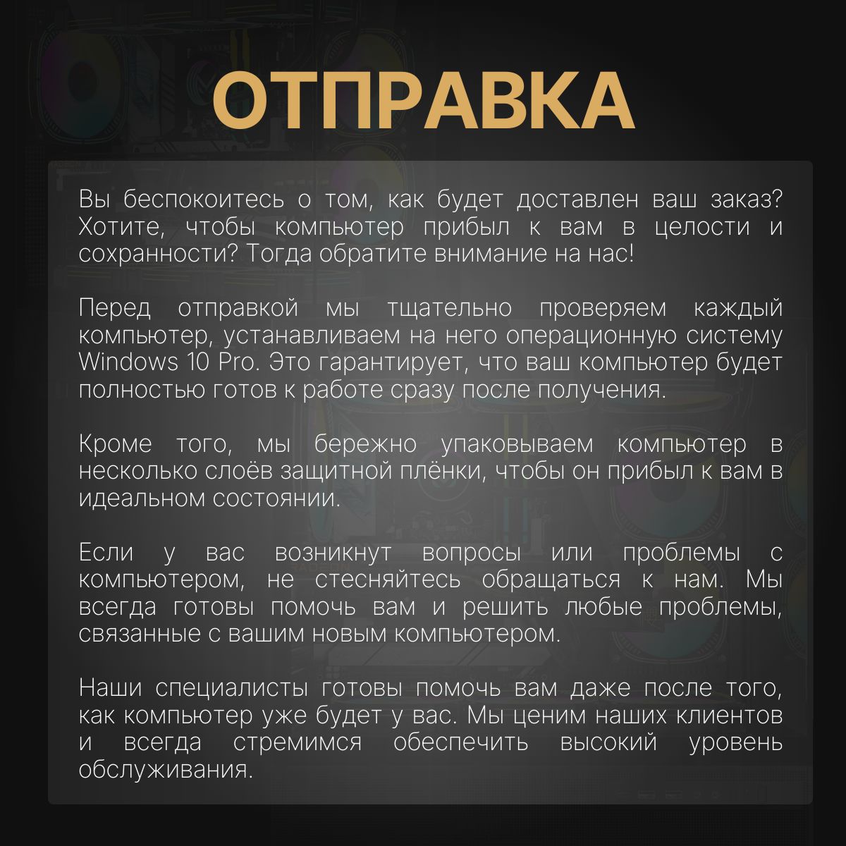 • Системный блок в усиленной заводской упаковке с амортизацией и защитой углов
