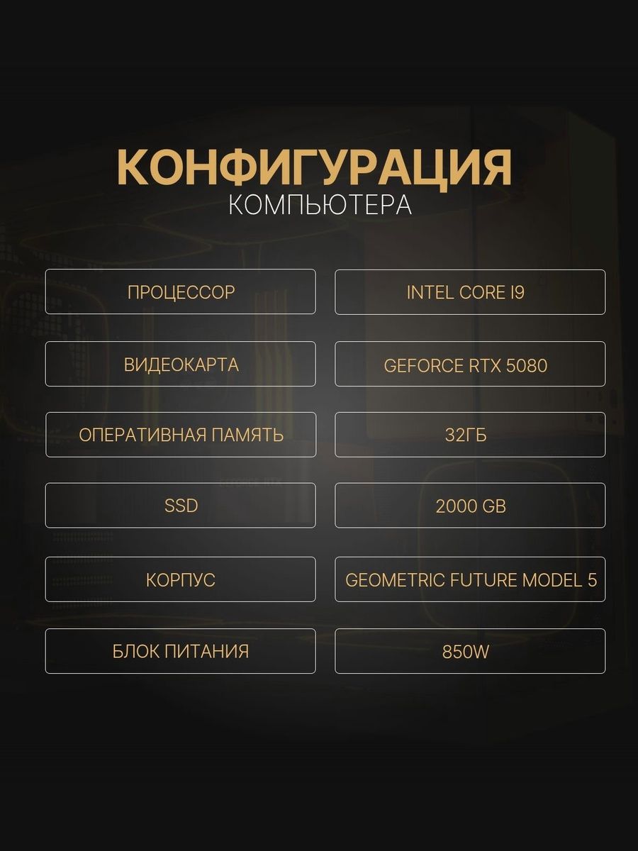 Мощный игровой компьютер Core i9 14900KF/ nVidia GeForce RTX5080 /32GB/ SSD 2000Gb/ 850W /Win 10 PRO
