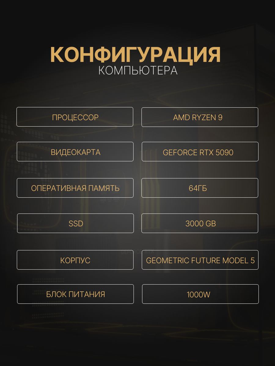 Мощный игровой компьютер RYZEN 9 9950X3D/ RTX5090 /96GB DDR5/ SSD 3000Gb/ 1000W /Win 11 PRO