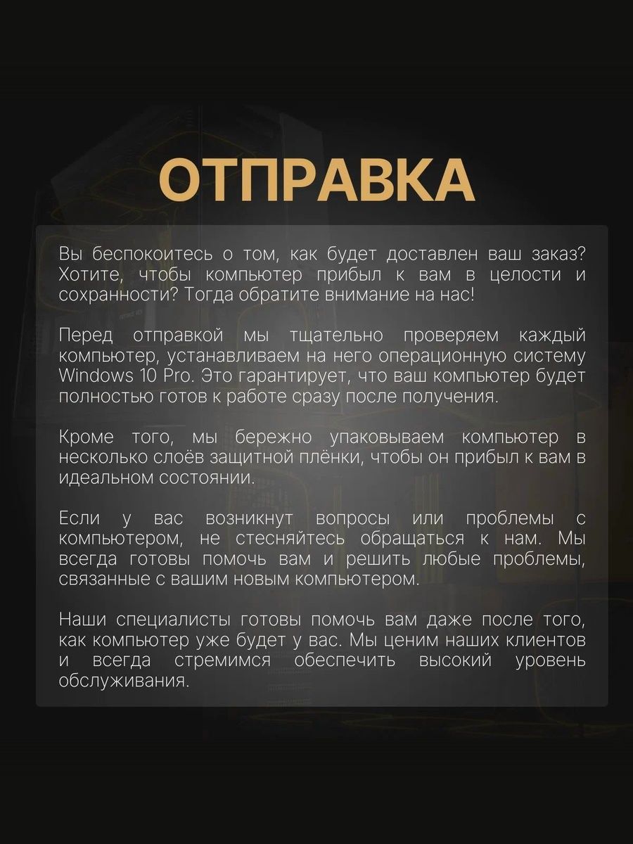 • Системный блок в усиленной заводской упаковке с амортизацией и защитой углов