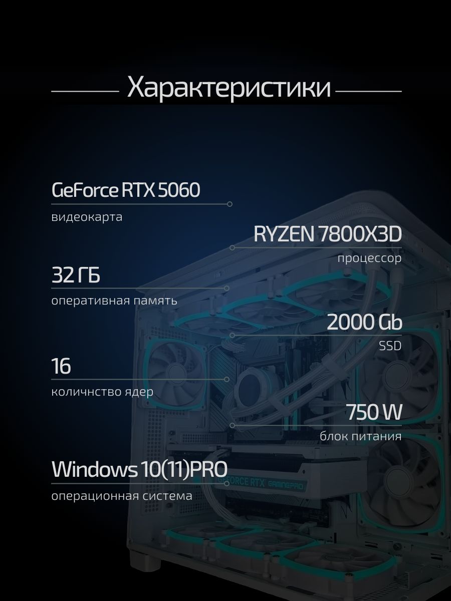 Игровой компьютер / RYZEN 7 7800X3D / NVIDIA RTX5060 / 32GB / DDR5 / SSD 2 ТБ