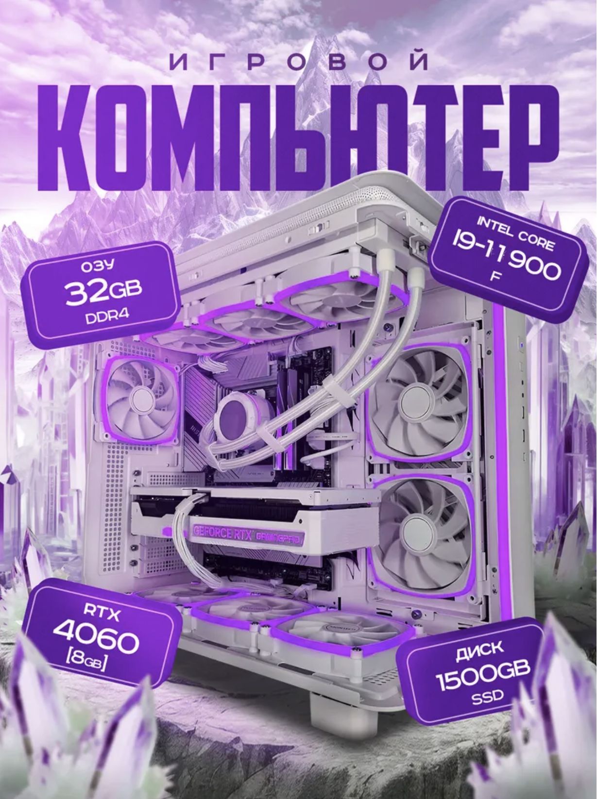 Мощный компьютер (системный блок) Intel i5 14400F /RTX4060 / 32GB/ SSD 1500 Gb/750W/Win 11 PRO