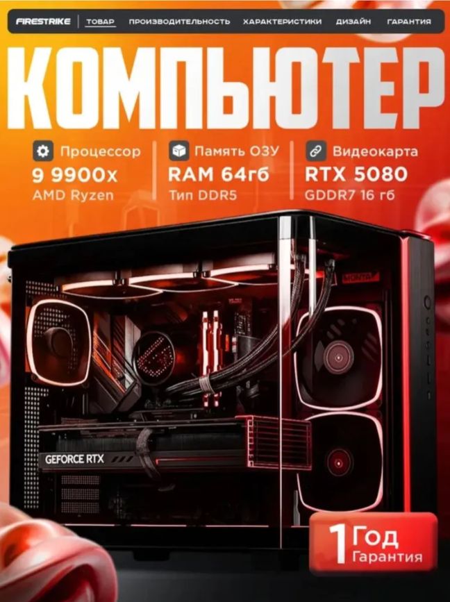 Игровой компьютер / RYZEN 9 9900X / NVIDIA RTX5080 / 64GB / DDR5 / SSD 2 ТБ